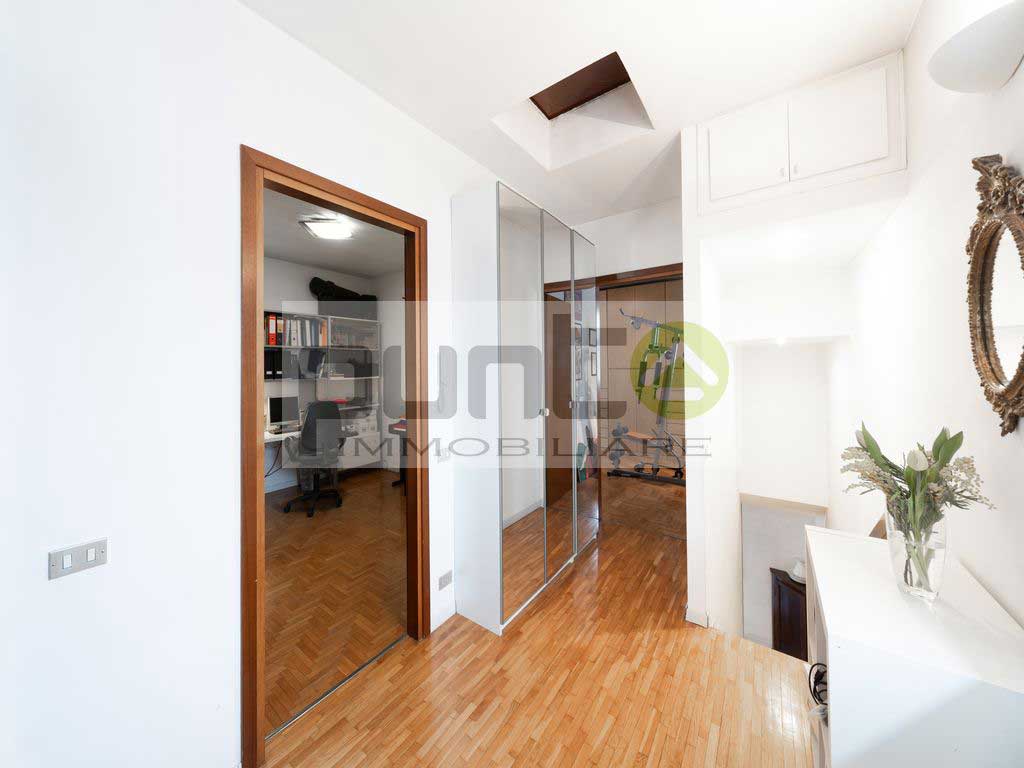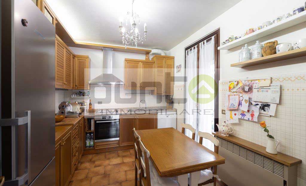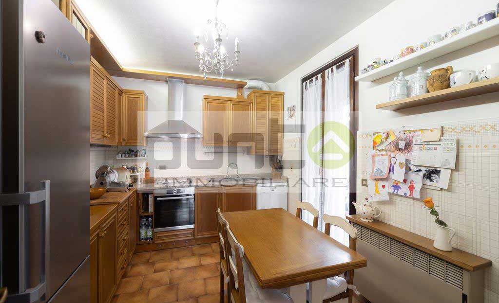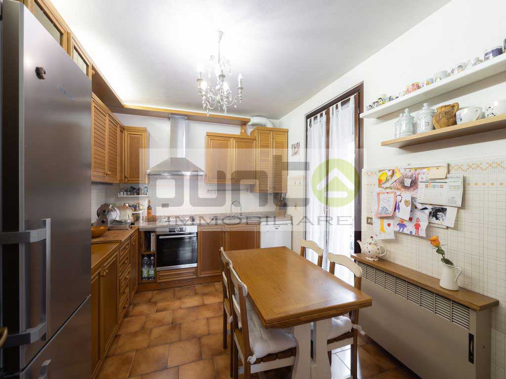 All’ingresso si viene accolti da un soggiorno, luminoso grazie alla doppia esposizione sul giardino, con una chiara separazione tra la zona living e la cucina abitabile, quest’ultima pensata come ulteriore spazio funzionale per la vita quotidiana. Al piano terra si trova anche un ampio bagno di servizio. Una scala interna conduce al primo piano, dove si sviluppa la zona notte composta da tre comode camere da letto, un disimpegno, un bagno padronale e un balcone che serve due delle camere, offrendo ulteriore spazio all’aperto.
